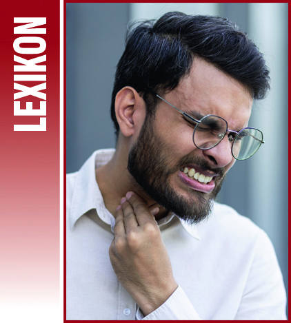 Als Larynx, Kehlkopf, bezeichnet man ein komplexes Knorpel- und Muskelorgan im Hals, das ein Verbindungsstück zwischen Rachen und Luftröhre darstellt. Der Larynx besteht aus Knorpeln (Schild-, Ring- und Stellknorpel), Bändern und Muskeln. Der Schildknorpel bildet den sichtbaren „Adamsapfel“ und sorgt dafür, dass keine Nahrung in die Lunge gelangt.
